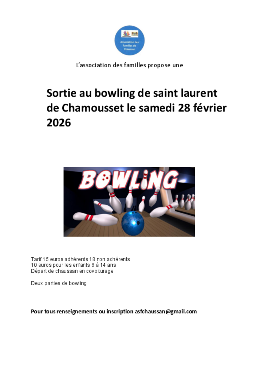 Association des familles Départ de Chaussan en covoiturage. Ajouter à mon Calendrier (.ics) Le 28/02/2026 Horaires Après-midi Retour