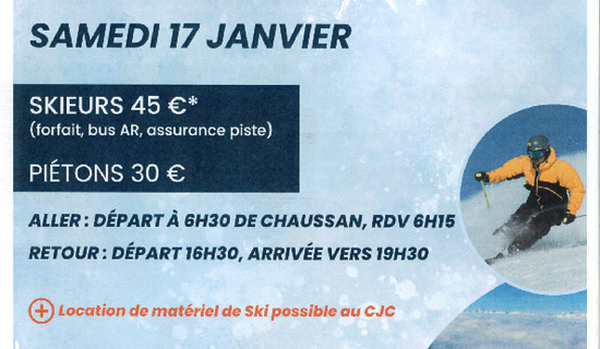Sortie de ski du CJC Sortie de ski organisée par le club des jeunes de Chaussan le samedi 17 janvier 2026 Sortie de ski ... 17/01/2026 17/01/2026
