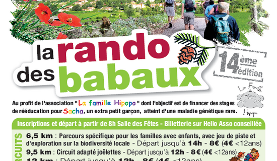 Rando des babaux 19/04/2026 14ème édition de la rando des Babaux au profit de l'association "La famille Hipopo" dont l'objectif ...